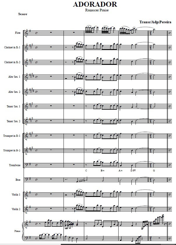 Arranjo Para Orquestra (Cantado) Para Os Seguintes Instrumentos: Flauta, Clarinetes, Sax Alto, Sax Tenor,Trompetes, Trombones, Base, violinos,Viola e Cello.